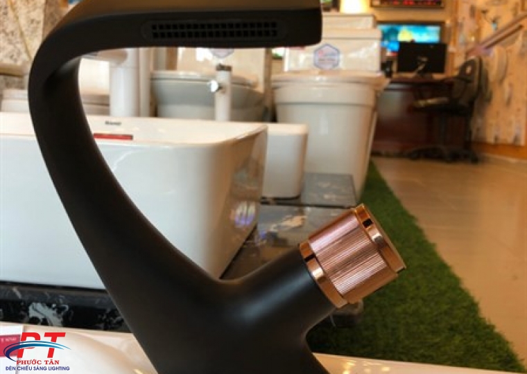 Vòi lavabo xả nghiêng đen núm vàng